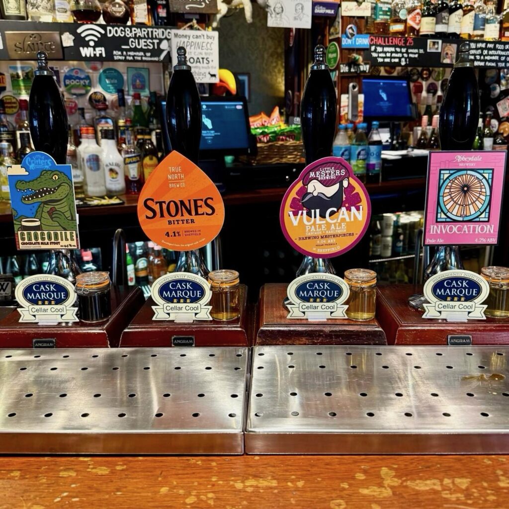 On the bar are 4 cask lines, usually including at least one Abbeydale beer, with a choice of a bitter, a stout and 2 paler options. There is also a central column of 4 craft keg lines, and a further 8 keg lines for lagers, ciders, and the ‘Holy Trinity’ of Irish Stouts; Guinness, Murphy’s, and Beamish (as of writing this is claimed to be the only pub in S Yorks offering Beamish). These offerings earn them a spot on Sheffield’s legendary ‘Irish Triangle’.