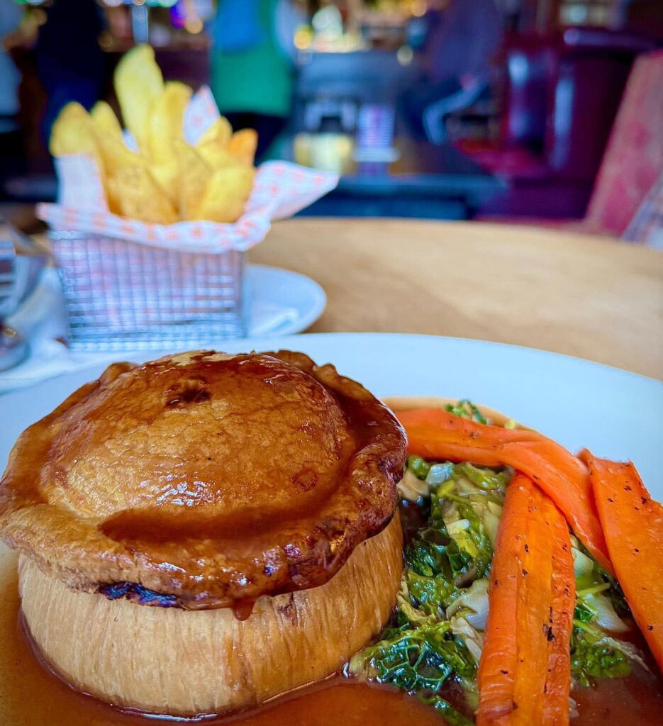 Old Hall Hotel in Hope made a shameless attempt at luring in folk doing “Dry January” with their “Pie January” relaunch of an ongoing menu item there – Steak & Old Peculiar Ale pie. It is now an individually pressed pie, but still served with beef dripping cooked chips, seasonal vegetables and gravy!