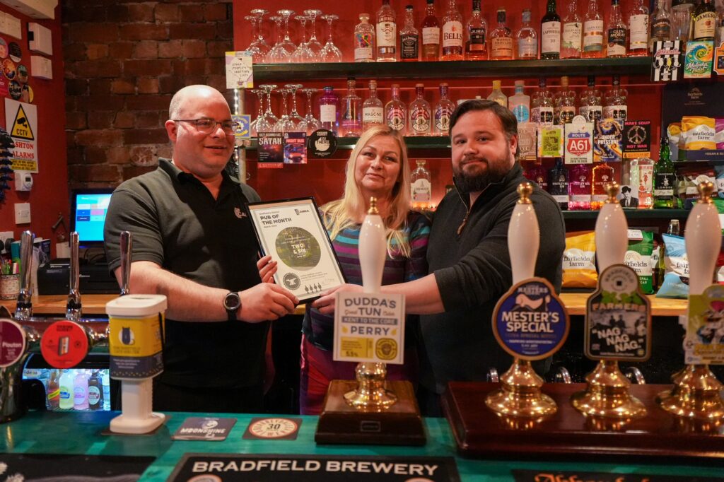Josh, Louise and their team at the Kelham Island Tavern receiving their 2025 award from our Chairman Paul Manning.