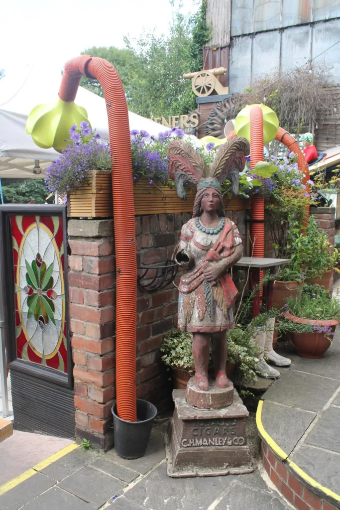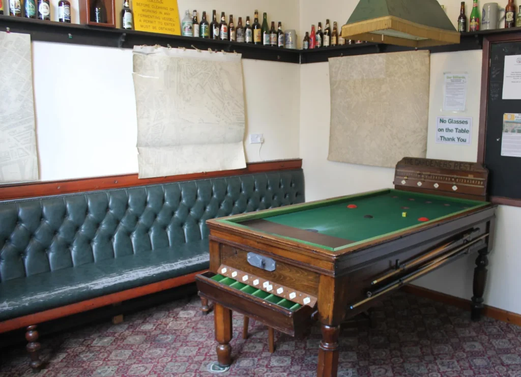 The pub is split into several areas. There is a main bar area where music events are held regularly, and to the left of the entrance is a small billiards room in the former dram shop. To the rear is a conservatory which leads out into an eclectically decorated garden overlooking the Don.
