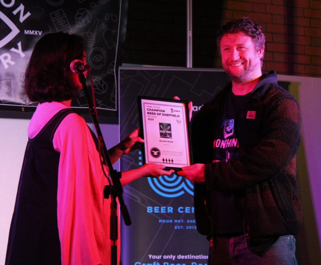 Attention then moved to the stage where after welcoming everyone to the festival, Paul introduced Megan from Beer Central who announced the winners of our Champion Beer of Sheffield & District competition and presented the certificates to the winning brewers.