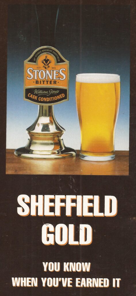 The beer’s popularity reached its peak in 1992 when it was the country’s highest selling bitter, selling over a million barrels. In 1994-96, the “Sheffield Gold” campaign was set in a steel foundry: it was filmed in the Czech Republic because Sheffield’s own foundries were considered to be too clean and automated for the desired gritty, industrial effect. The beer has been lauded as “one of Sheffield’s most famous exports.”