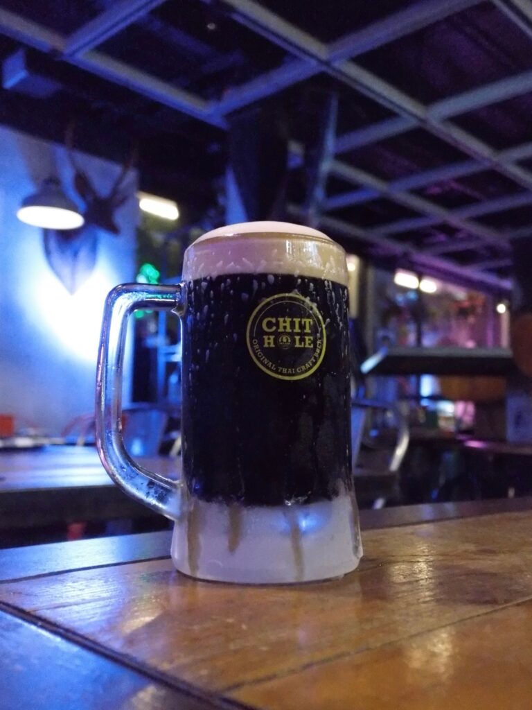 I then visited a Chit Hole for the first time. Chit started out as Thailand’s most infamous home brewer, often being shut down by the authorities for short periods. His original bar is located on the artificial island of Pak Kret in the Khaopraya river which can only be visited by boat. I didn’t get a chance to make that journey on this trip, however there are now a series of bars named the Chit Hole across the city, often cohabiting with a restaurant or other business. These bars serve exclusively Thai beer, and I enjoyed Chit’s own Hipster IPA (7.2%) and Top Hill (6.5% Porter).